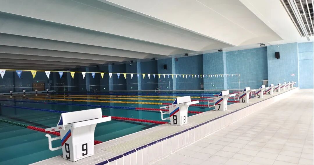 室外設(shè)有田徑場(chǎng)、籃球場(chǎng)、足球場(chǎng)、網(wǎng)球場(chǎng)等,室內(nèi)設(shè)有游泳館、羽毛球場(chǎng)、排球場(chǎng)、健身房等,可滿足師生日常體育運(yùn)動(dòng)和團(tuán)體活動(dòng)需求。