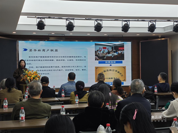 荊楚網(wǎng)(湖北日報網(wǎng))訊(通訊員 周璇)11月6日,武昌區(qū)糧道街道在曇華林社區(qū)舉辦第八期“書記大講堂”,以“從‘單打獨斗’到‘同心共治’:曇華林商戶聯(lián)盟的‘前世今生’”為主題,探索黨建引領下歷史文化街區(qū)可持續(xù)發(fā)展路徑。社區(qū)下沉單位黨員代表、社區(qū)工作者、小區(qū)黨支部委員及街道其他社區(qū)“兩委”成員代表共50人齊聚,共話基層治理良方。