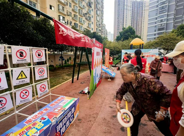 “烈焰突圍”區(qū)模擬火災(zāi)逃生場(chǎng)景,居民在游戲過(guò)程中逐步學(xué)習(xí)疏散避險(xiǎn)技巧;“反詐套圈”前,通過(guò)回答反詐相關(guān)問(wèn)題贏取套圈機(jī)會(huì),在歡樂(lè)的氛圍中將反詐要點(diǎn)牢記于心;“射箭滅火”“安全保齡球”等項(xiàng)目則讓居民在趣味互動(dòng)中,掌握初期火災(zāi)撲救知識(shí)、識(shí)別日常安全隱患;“安全知識(shí)互動(dòng)棋”以棋盤為媒,讓居民在每一步落子答題中,將安全常識(shí)內(nèi)化于心。