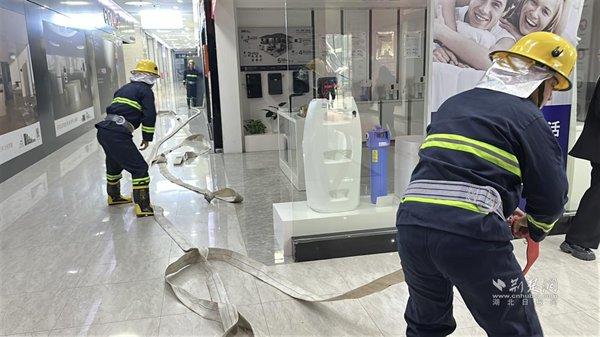 模擬火情場景中,商場應急隊員針對每層樓的模擬火苗,熟練開展水帶連接并完成初期火情撲救;社區(qū)應急隊員操控微型消防車,精準瞄準“火苗”噴射水流,成功將火情消滅在萌芽狀態(tài);居然之家商場員工在消防員的指導下,依次體驗滅火器的使用,切實掌握滅火器的使用方法。