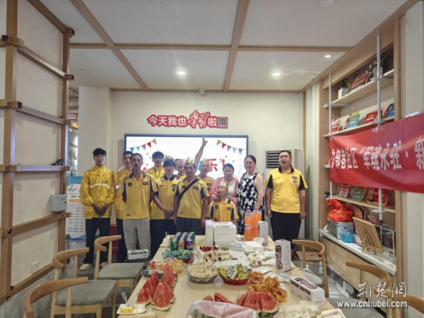 “來,小李,生日快樂!”一場熱鬧的集體生日會,讓幾位靦腆的“騎士”紅了眼眶。騎手小劉第一次把妻子和孩子接到了自己的“工作大本營”?!翱粗⒆釉谶@么好的環(huán)境里玩,吃著社區(qū)為我們準備的蛋糕,心里特別暖。家人理解了我的工作,我也覺得更有干勁了!”像這樣的集體生日會、青春夜校、趣味運動會等活動,社區(qū)一年組織了10余場。驛站里新增的聽書角和閱讀區(qū),則成了大家忙里偷閑的“精神充電站”。