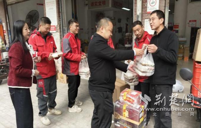 為讓快遞員在高強度工作中感受到關(guān)懷,近日,江漢區(qū)唐家墩街道香江新村社區(qū)黨委聯(lián)合湖北省中西醫(yī)結(jié)合醫(yī)院職工食堂,于“雙十一”期間將“小哥食堂”的溫暖送至京東、德邦等快遞網(wǎng)點,為一線快遞員送上熱騰騰的午餐,用實際行動表達(dá)敬意與支持。