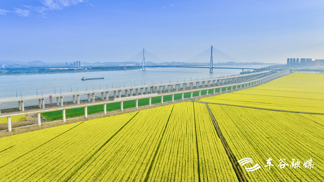 每年春季,16號線宛如“開往春天的列車”。在沌口至小軍山路段的短短三分鐘行程中,列車穿行于金黃的油菜花海,遠處長江壯闊,沌口長江大橋巍然屹立,構(gòu)成一幅動人的春日畫卷。有乘客感嘆:“高空俯瞰花海,江景一路相伴,這是一趟浪漫的旅程。”