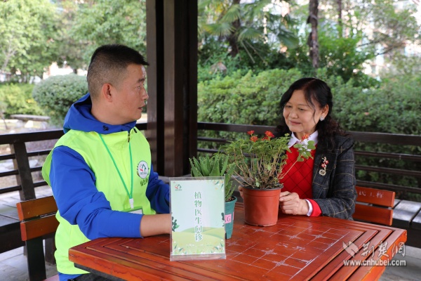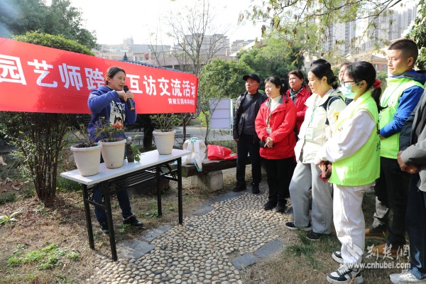 江漢區(qū)民權(quán)街道打銅社區(qū)園藝師辛高爐分享植物養(yǎng)護(hù)經(jīng)驗(yàn)。 通訊員供圖