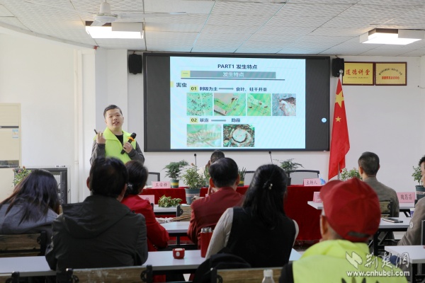 武漢市園林科學(xué)研究院工程師裴張新帶來(lái)秋冬季病蟲(chóng)害防治小課堂。 通訊員供圖