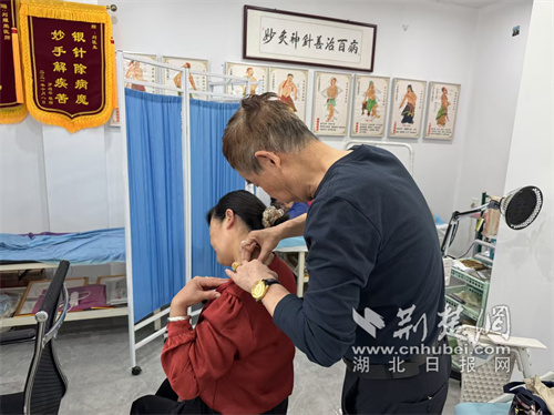 老中醫(yī)劉耀榮為居民推拿。 通訊員 劉柳、王蕾 供圖