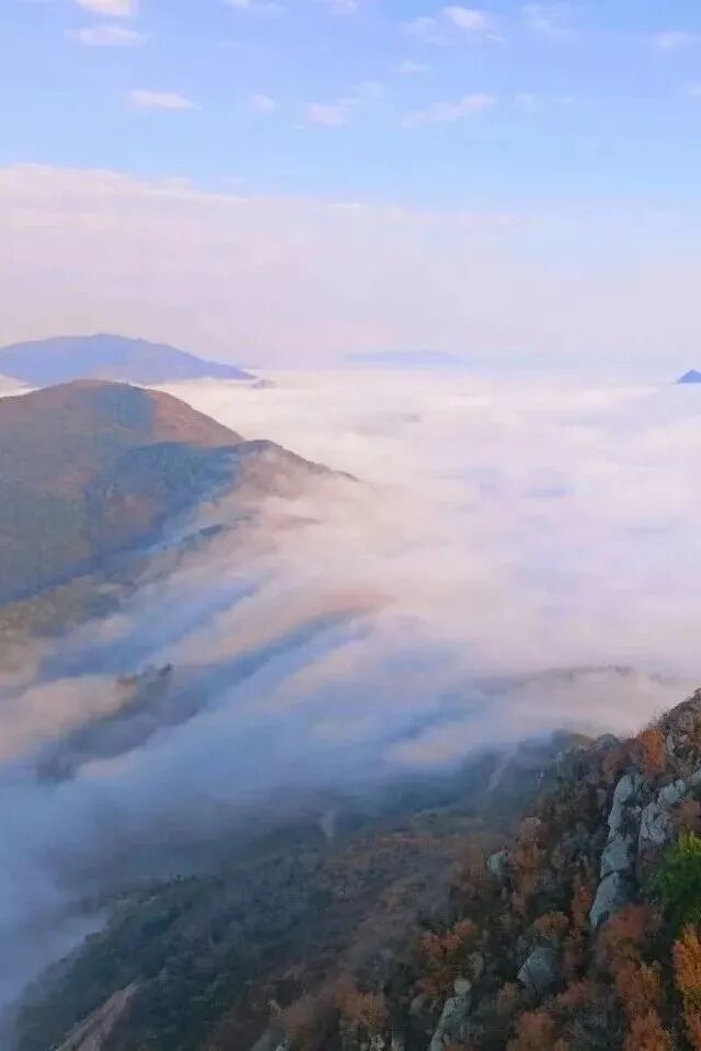 層林盡染疊著云霧繚繞