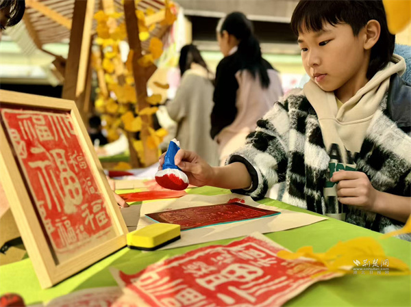 中藥香囊攤位散發(fā)著艾草、薄荷等香料的清香,居民們?cè)谥驹刚呃蠋煹闹笇?dǎo)下,根據(jù)個(gè)人喜好,自由搭配制作專(zhuān)屬香囊。福字拓印DIY區(qū),小朋友們手持拓印工具,親手制作寓意吉祥的福字。