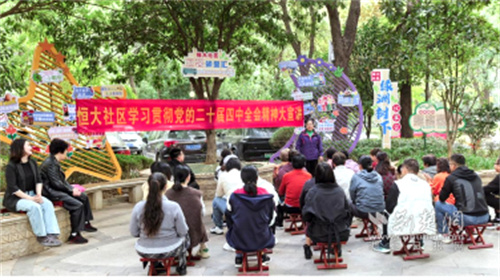 社區(qū)黨委堅持把理論武裝擺在首位,著力構(gòu)建立體化宣講矩陣。創(chuàng)新打造“綠洲樹下”“小亭議事”“周三有約”等特色微陣地,充分發(fā)揮“社區(qū)合伙人”中老黨員、退伍老兵、先進模范等榜樣力量的核心作用,組建“紅色宣講團”。宣講團成員化身“草根講師”,走出會議室,深入綠蔭下、小亭中,以百姓視角、武漢方言、拉家常方式,生動解讀二十屆四中全會精神等理論及最新政策,使黨的聲音更鮮活、更可感。在“潤物有聲”的微課堂里,居民圍坐探討、邊聽邊議、有問有答,實現(xiàn)了理論學習“零距離”、思想傳播“接地氣”。同步開展“治理金點子”征集活動,引導居民將學習成果轉(zhuǎn)化為參與社區(qū)治理的實際行動,圍繞公共事務、環(huán)境整治、鄰里互助等議題積極建言獻策,累計收集有效建議100余條。