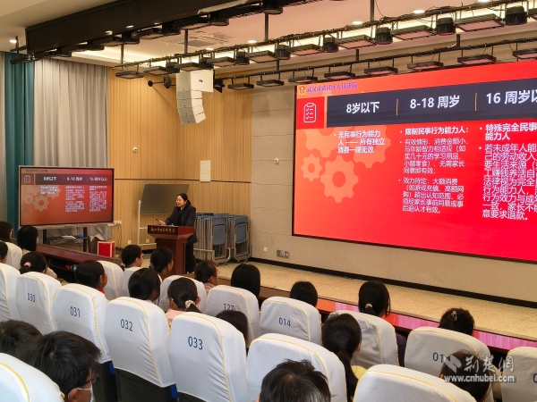 活動(dòng)中,武昌區(qū)人民法院白沙洲法庭余意法官以《未成年人民事法律行為效力》為題,用“未成年人網(wǎng)購貴重物品是否有效”等案例,按年齡分層解析法律責(zé)任邊界,讓學(xué)生快速厘清不同階段的民事行為效力,直觀感受憲法及民事法律對(duì)青少年權(quán)益的保護(hù)。