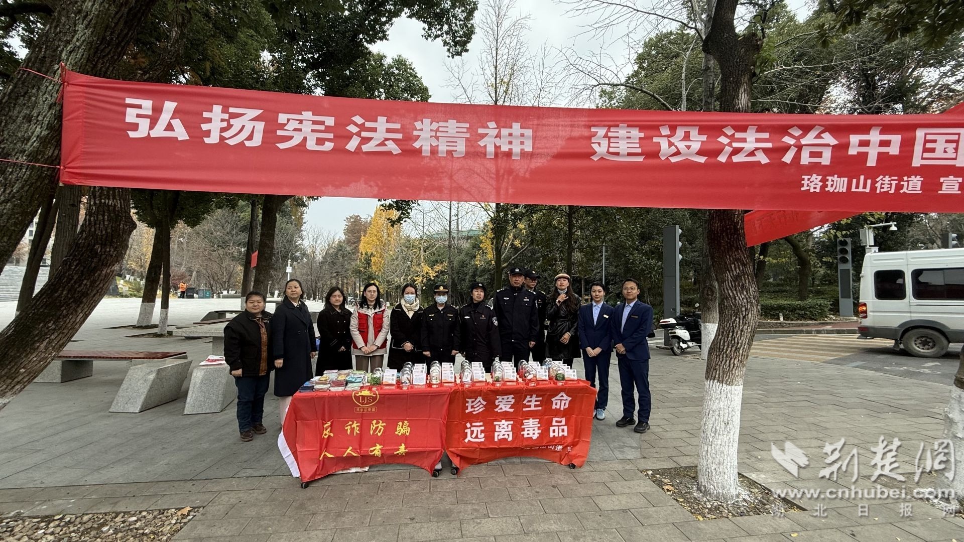 荊楚網(wǎng)(湖北日報網(wǎng))訊(通訊員 方茜)12月4日,武昌區(qū)珞珈山街道聯(lián)合武漢大學保衛(wèi)部、轄區(qū)派出所、司法所、執(zhí)法隊等多部門,在武漢大學萬林藝術(shù)博物館門前舉辦“憲法宣傳周”暨國家憲法日集中宣傳活動。本次活動以“憲法守護健康權(quán),禁毒筑牢生命線”為主題,旨在弘揚憲法精神,增強全民法治觀念,同時深化禁毒宣傳教育,筑牢校園與社會禁毒防線。