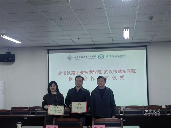 武漢市武東醫(yī)院與學(xué)校簽訂醫(yī)校合作協(xié)議。 通訊員供圖