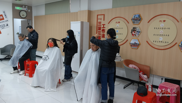 活動(dòng)最后是便民服務(wù)環(huán)節(jié)。社區(qū)對接武昌“新興學(xué)院”天姿美容美發(fā)學(xué)校資源開展義務(wù)理發(fā)服務(wù)。志愿者們提前布置好服務(wù)區(qū),認(rèn)真做好工具消毒,隨后耐心詢問每一位前來理發(fā)的流動(dòng)黨員和老年人的需求,憑借嫻熟技藝為大家精心修剪發(fā)型?!安怀錾鐓^(qū)就能享受到這么好的服務(wù),還能和黨員同志們一起學(xué)習(xí)交流,心里特別暖。”一位剛理完發(fā)的老人滿意地說道?,F(xiàn)場洋溢著濃濃的鄰里溫情。