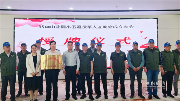 珞珈山花園小區(qū)退役軍人互助會(huì)成立大會(huì)授牌儀式。 通訊員供圖