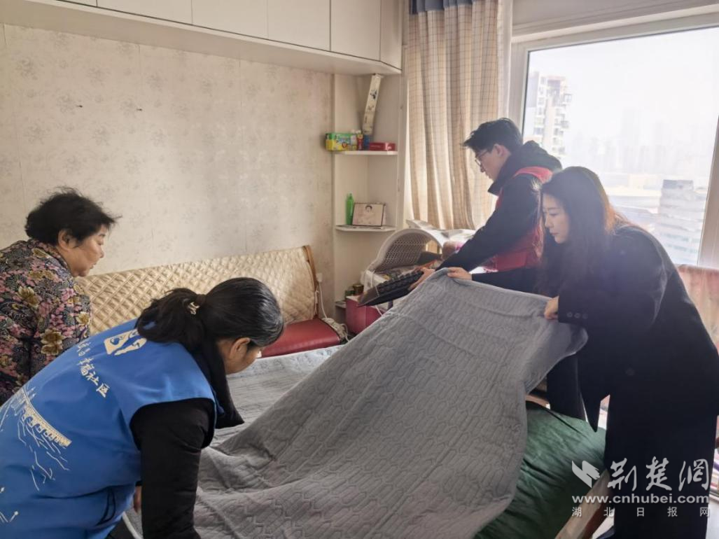 為老人鋪設水暖毯。 通訊員供圖