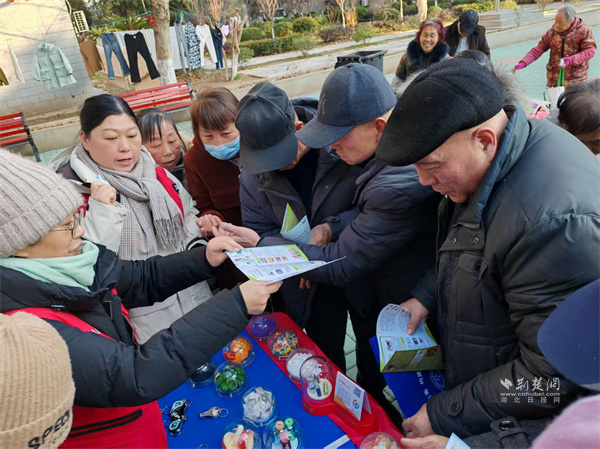 荊楚網(wǎng)(湖北日報(bào)網(wǎng))訊(通訊員 彭曉駿)為切實(shí)提升居民識(shí)毒、防毒、拒毒意識(shí),營造全民參與禁毒的濃厚氛圍。1月9日,在武漢市武昌區(qū)反恐禁毒委的指導(dǎo)下,白沙洲街道社區(qū)戒毒康復(fù)中心走進(jìn)武泰閘城市花園小區(qū),開展主題為“筑牢新年禁毒防線”的禁毒宣傳活動(dòng)。