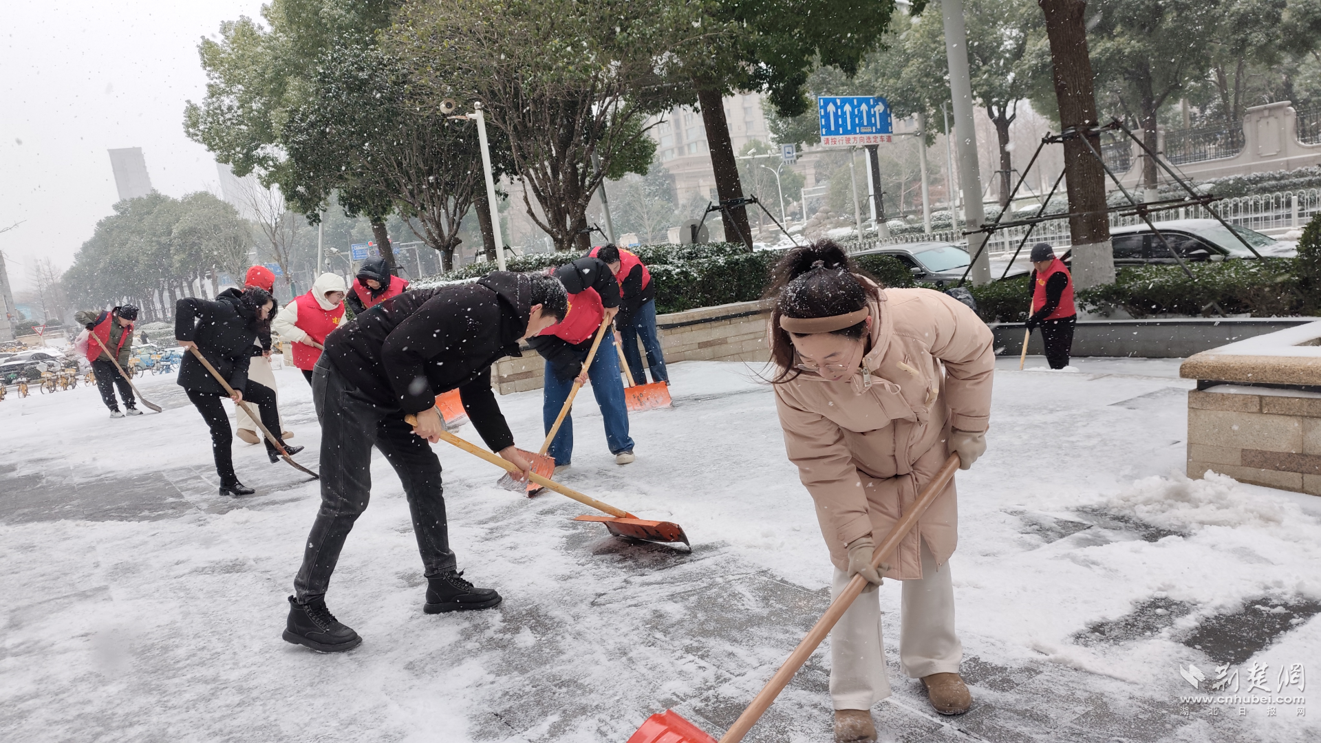 萬松街道則積極動員樓宇集聚區(qū)新興領(lǐng)域黨組織、商鋪和流動黨員組建志愿服務(wù)隊伍,開展清雪除冰行動。江漢人力資源服務(wù)產(chǎn)業(yè)集聚區(qū)黨委發(fā)出倡議,10余家企業(yè)、100余名職工志愿者迅速響應(yīng)。從商務(wù)樓宇到中央商務(wù)區(qū)地鐵沿線,清雪行動全面鋪開,為早晚高峰通行贏得時間。