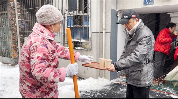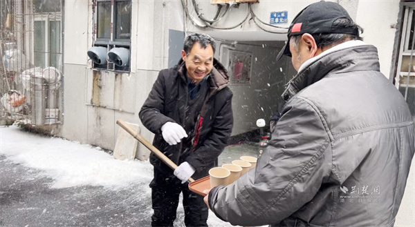 “大家歇一歇,喝點(diǎn)姜茶暖暖身子!”正當(dāng)眾人干勁十足時(shí),一位黨員居民端著熱氣騰騰的姜茶走來,將暖茶遞到每個(gè)人手中?!拔壹依习橹匕Y需要照顧,沒辦法和大家一起出力,只能煮點(diǎn)熱茶讓大家暖和一下?!币槐琛⒁宦晢柡?,凝聚起鄰里間最真摯的情誼,為掃雪行動(dòng)更添溫情。