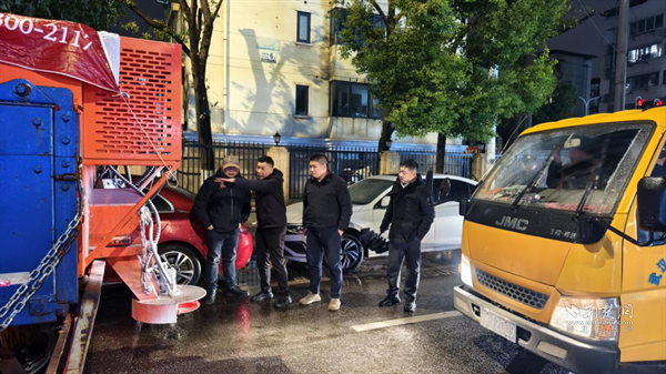 街道嚴格落實24小時應(yīng)急值班制度,一方面組織執(zhí)法隊員加強路面動態(tài)巡查,及時排查處置積雪壓枝、招牌松動等安全隱患;另一方面,環(huán)衛(wèi)隊伍持續(xù)開展夜間撒鹽防凍和巡查清理作業(yè),防止道路夜間結(jié)冰,確保次日清晨通行安全。