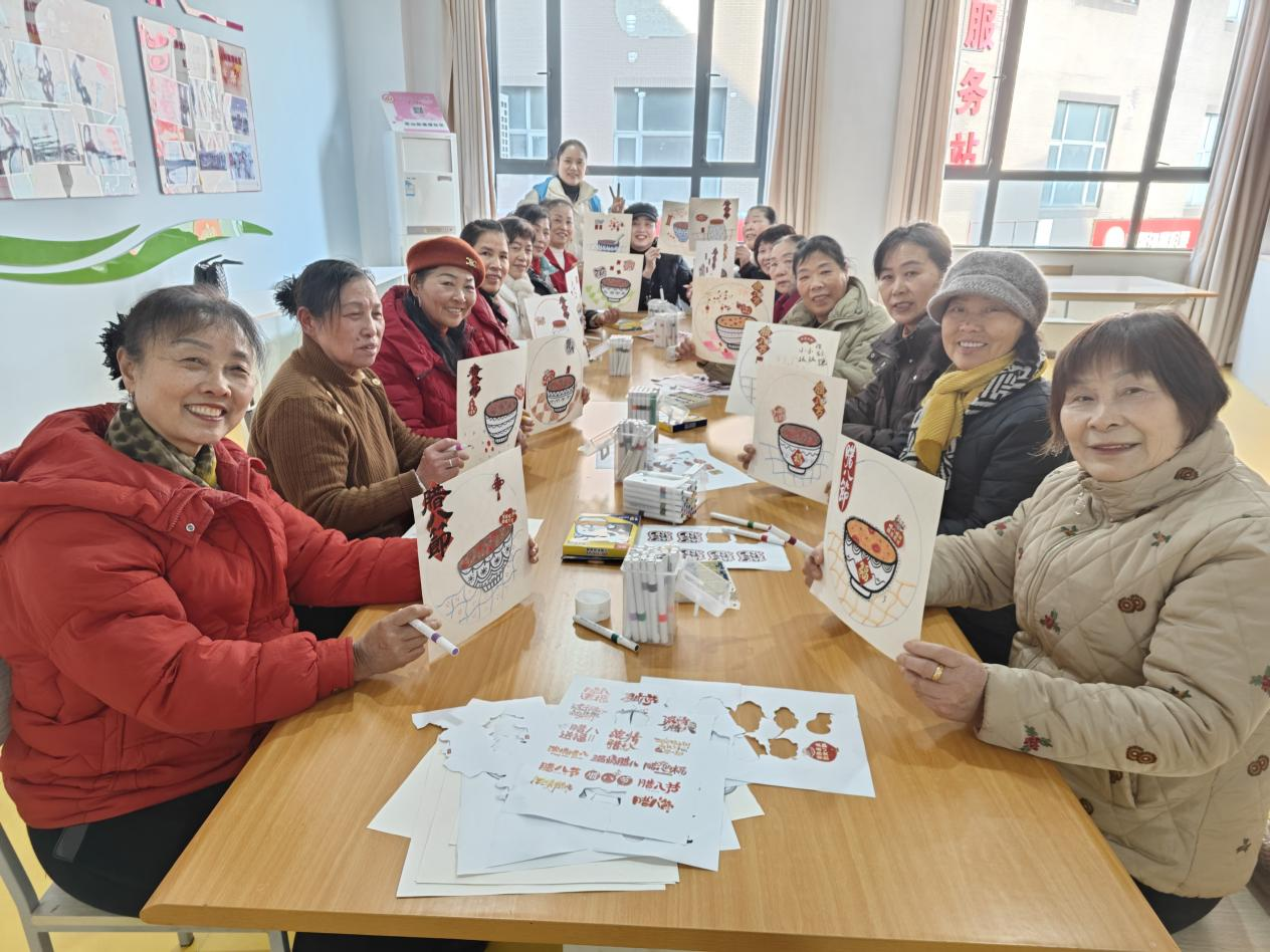 社區(qū)老年人活動中心內(nèi),老人們圍坐在一起體驗“溫情臘八”手工繪畫,在創(chuàng)作中增進鄰里情誼。“好多年沒畫過畫了,今天好像回到了年輕時候!”74歲的李庭香老人舉著自己剛完成的《臘八團圓圖》笑著說道。