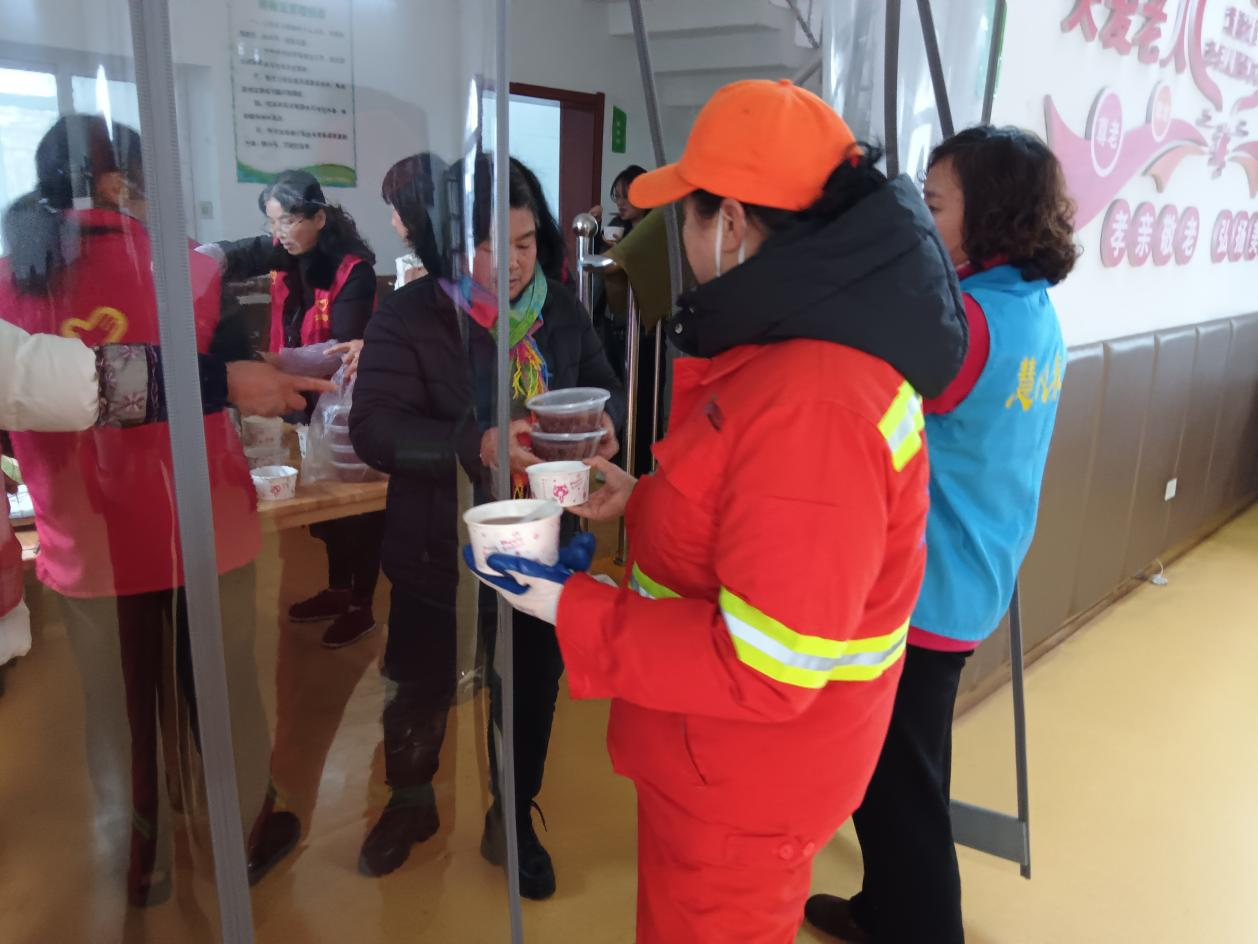 黃陵社區(qū)邀請戶外工作者到老年活動中心歇腳品粥。通訊員供圖