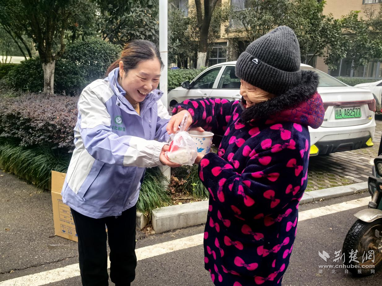 黃陵社區(qū)“暖心送粥隊”為社區(qū)老年居民送粥。通訊員供圖
