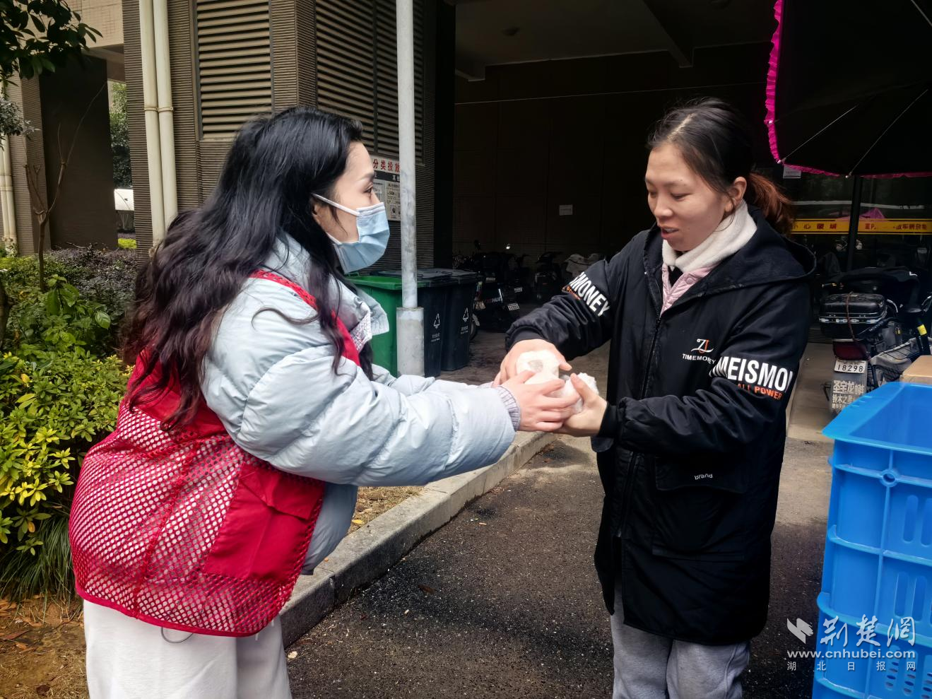 小軍山社區(qū)第一時間將熱粥送到了戶外工作者手中。通訊員供圖