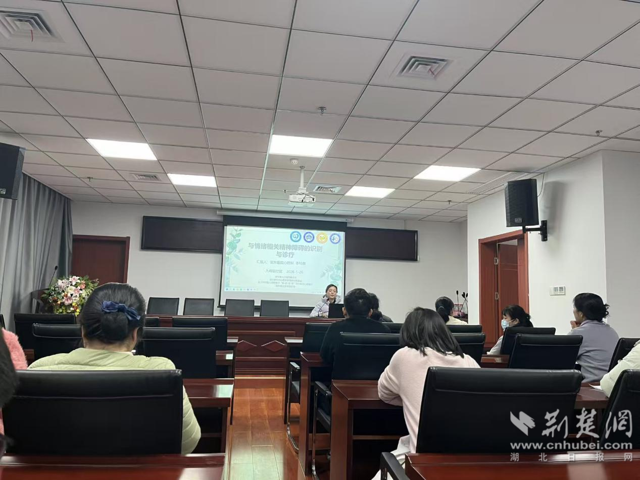 荊楚網(wǎng)(湖北日報網(wǎng))訊(通訊員 孫琳 李玲霞)1月26日,武漢市武東醫(yī)院精神障礙防治辦公室主治醫(yī)師李玲霞,下沉至東湖高新區(qū)九峰街社區(qū)衛(wèi)生服務中心開展精神障礙防治專題講座,該中心60余名基層醫(yī)務工作者參與學習。
