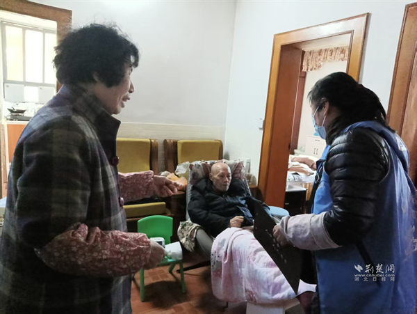 社區(qū)網(wǎng)格員上門(mén)看望高齡老人。 通訊員供圖