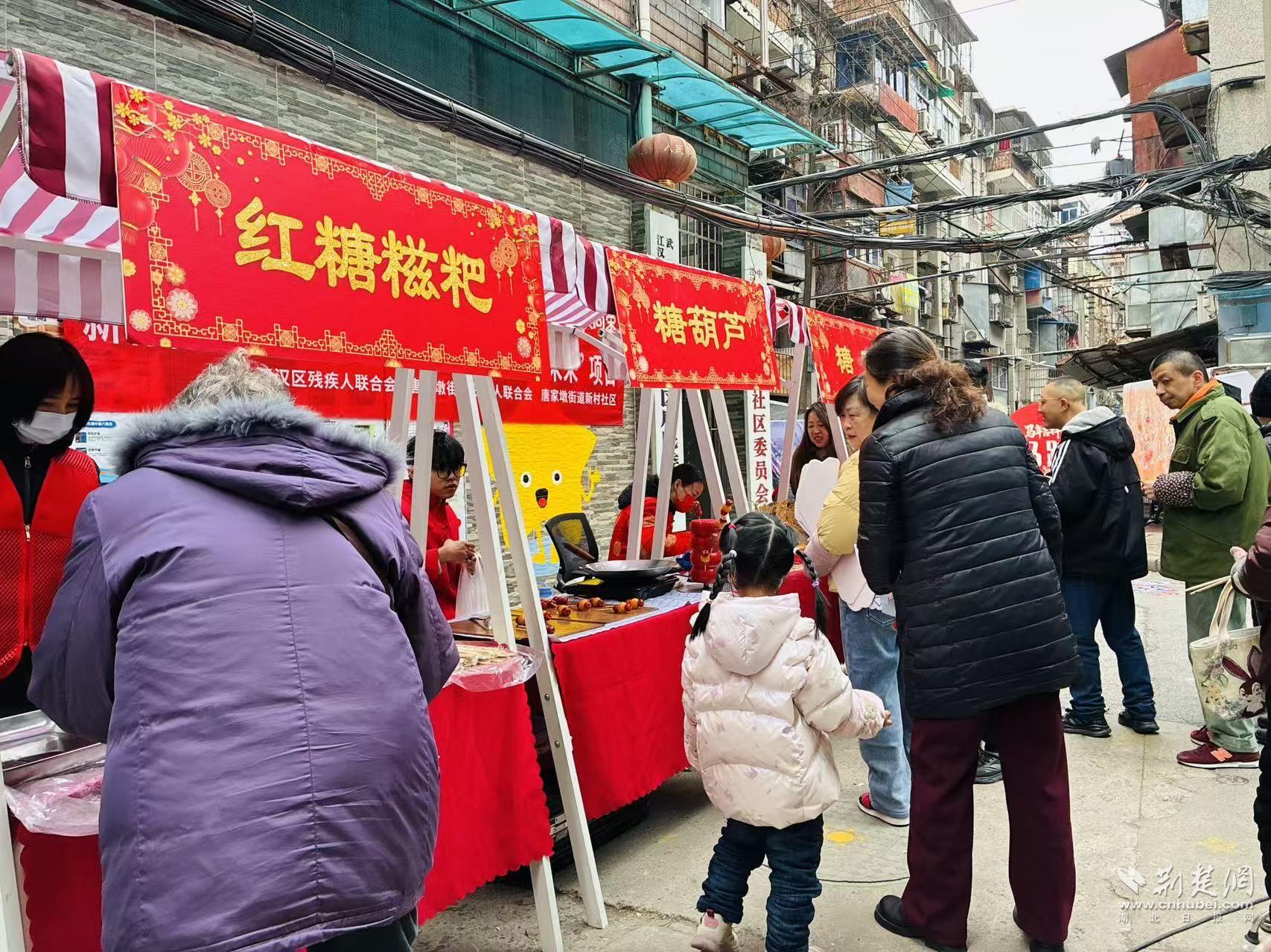 當(dāng)天,新村社區(qū)舉辦“匠心傳承煥新彩 非遺助殘啟未來”項(xiàng)目系列活動之一——“非遺游園匯百藝 鄰里同心啟新章”。在江漢區(qū)殘疾人聯(lián)合會和唐家墩街道殘疾人聯(lián)合會的指導(dǎo)下,這場游園會以非遺為紐帶,把文化體驗(yàn)、鄰里互動和助殘關(guān)懷融進(jìn)一場“家門口的過年”。