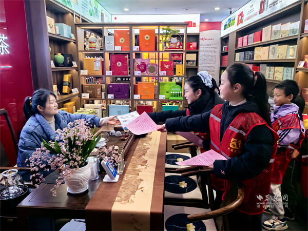 來自樓宇托管班的十余名小學(xué)生,在志愿者引導(dǎo)下化身“小小安全宣傳員”。他們身著“紅背心”,手持禁鞭宣傳折頁和倡議書,分組走進(jìn)陸羽茶都商鋪和人群聚集點(diǎn),向商戶、顧客及過往市民講解煙花爆竹禁燃禁放的相關(guān)規(guī)定、潛在危害及環(huán)保意義,并分發(fā)倡議資料。