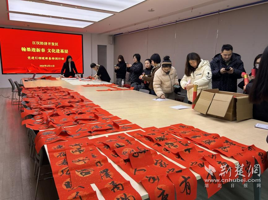 江漢經(jīng)濟開發(fā)區(qū)開展“翰墨迎新春 文化進基層”黨建引領(lǐng)暖新春特別行動,邀請書法家現(xiàn)場書寫春聯(lián)和“?!弊?,為園區(qū)企業(yè)員工、新就業(yè)群體和流動黨員代表送上節(jié)日祝福,在傳承傳統(tǒng)文化中傳遞組織溫暖。
