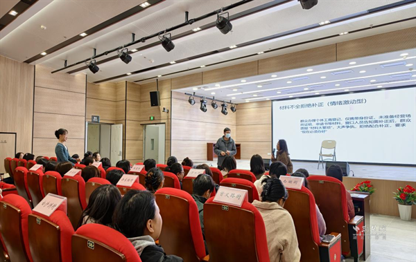 核心實訓環(huán)節(jié)突出“實戰(zhàn)導向、沉浸式體驗”,特邀專業(yè)禮儀師授課,創(chuàng)新打造理論筑基、示范教學、實景演練相結(jié)合的三維培訓模式,推動培訓內(nèi)容入腦入心、落地見效。理論教學緊扣政務(wù)服務(wù)禮儀規(guī)范、群眾接待溝通技巧兩大核心,從儀容儀表、言行舉止到溝通話術(shù)進行全維度系統(tǒng)講解,引導參訓人員樹立以人民為中心的服務(wù)理念,熟練掌握標準化服務(wù)禮儀要領(lǐng)。示范教學環(huán)節(jié),禮儀師結(jié)合政務(wù)服務(wù)高頻場景,現(xiàn)場演示規(guī)范禮儀動作,通過抽選參訓人員實操、集體鞏固訓練等形式,及時糾偏不足,確保人人懂規(guī)范、會操作。