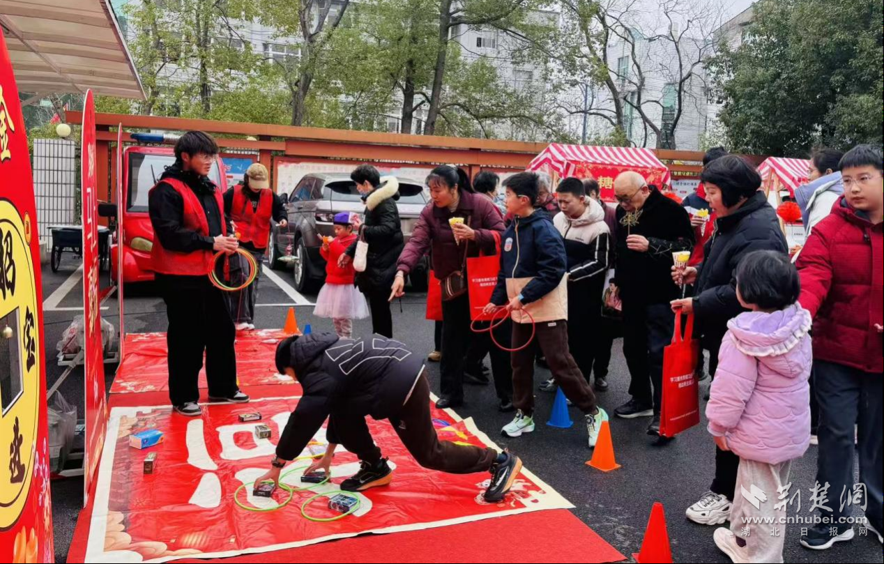 活動現(xiàn)場,居民簽到領(lǐng)取游戲券、燈謎券,開啟游園之旅。燈謎區(qū)五彩燈籠懸掛,居民結(jié)伴猜謎兌獎;志愿者現(xiàn)場分發(fā)熱乎湯圓,傳遞團(tuán)圓祝福。趣味游戲區(qū)設(shè)置擲沙包、套圈等環(huán)節(jié),非遺小吃區(qū)有糖畫、糖葫蘆等供居民品嘗,兒童舞動彩龍更是將活動推向高潮。