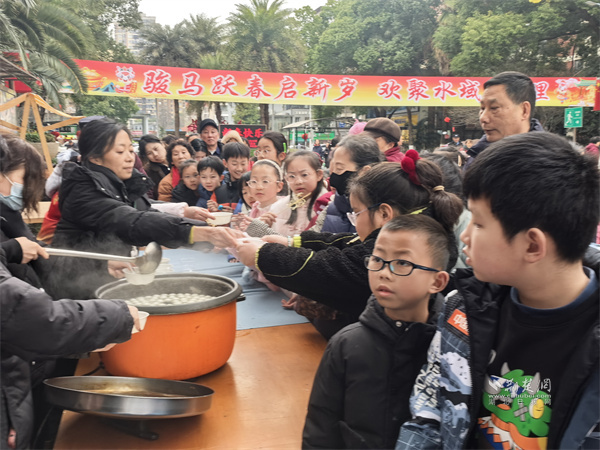工作人員向居民發(fā)放元宵。 通訊員供圖