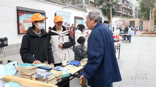 “你看,這樣輕輕一穿,書頁就固定住了?!眮碜晕錆h大學(xué)圖書館的小布志愿服務(wù)隊(duì)現(xiàn)場(chǎng)展示圖書修補(bǔ)技藝,一本本舊書在他們的巧手下重獲新生。東湖村社區(qū)里,各學(xué)院志愿者各施所長,讓公益服務(wù)既有文化底蘊(yùn)又有專業(yè)溫度。法學(xué)院“普法進(jìn)社區(qū)”系列志愿服務(wù)項(xiàng)目團(tuán)隊(duì)通過趣味游戲普及法律知識(shí)。外國語言文學(xué)學(xué)院的志愿者開展圖書漂流義賣,實(shí)現(xiàn)資源循環(huán)利用。數(shù)學(xué)與統(tǒng)計(jì)學(xué)院“學(xué)習(xí)邦”團(tuán)隊(duì)展示數(shù)理支教成果,助力鄉(xiāng)村教育。生命科學(xué)學(xué)院的志愿者帶來植物拓染、葉脈書簽制作,帶領(lǐng)居民探尋自然奧秘。從文化守護(hù)到科學(xué)啟蒙,居民們?cè)诨?dòng)體驗(yàn)中感受知識(shí)的溫度與文化的力量。