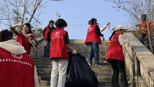 武漢長(zhǎng)江大橋蛇山南坡清潔行動(dòng)。 通訊員供圖