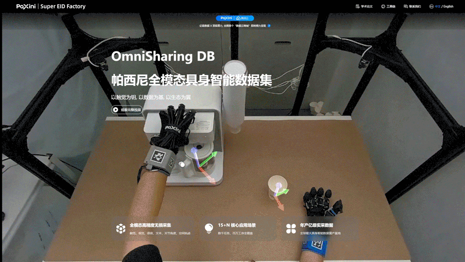 該技術(shù)也應(yīng)用于此次落地東西湖的數(shù)據(jù)采集系統(tǒng),設(shè)備搭載數(shù)千顆ITPU多維觸覺(jué)傳感單元與視覺(jué)矩陣,搭配真人佩戴的PMEC數(shù)據(jù)采集手套,實(shí)現(xiàn)全維度信息捕捉,破解數(shù)據(jù)采集難題。相比普通數(shù)據(jù)采集的“無(wú)聲電影”模式,該模式如同“4D沉浸式教學(xué)”,數(shù)據(jù)采集效率提升3-6倍,數(shù)據(jù)可通用共享,大幅降低訓(xùn)練成本。