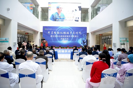 上午,黃石市中心醫(yī)院腔鏡手術(shù)機器人開機儀式在黃金山院區(qū)舉行,黃石市衛(wèi)生健康委主任嚴(yán)定方,中華醫(yī)學(xué)會泌尿外科分會常委、武漢市醫(yī)學(xué)會機器人與腔鏡外科分會主委、武漢同濟醫(yī)院泌尿外科主任王少剛教授,黃石市中心醫(yī)院院長袁明,黃石市中心醫(yī)院外科主任夏國兵等與會嘉賓和專家共同按下“手術(shù)機器人技術(shù)開啟智能化精準(zhǔn)手術(shù)時代”的啟動球,開啟了黃石地區(qū)微創(chuàng)手術(shù)邁入機器人的新時代。開機儀式上,黃石市中心醫(yī)院黃金山院區(qū)還被授牌為“手術(shù)機器人培訓(xùn)基地”。