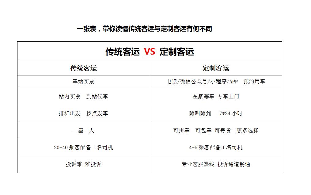 與傳統(tǒng)客運(yùn)大巴相比,定制客運(yùn)采用的是更為靈活的5座轎車或7座商務(wù)車,可以實(shí)現(xiàn)點(diǎn)對(duì)點(diǎn)、門對(duì)門的上門接送服務(wù),減少旅客倒車、候車之苦。并且隨叫隨到,每日24小時(shí)在線,所有服務(wù)均提供正規(guī)發(fā)票和保險(xiǎn)保障。