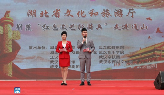 云上通山訊(通訊員 鄧文義 鄧娜)暖風(fēng)和煦,遍地芬芳,最美人間四月天。4月11日,由省文化和旅游廳主辦,省文化活動策劃中心、咸寧市文化和旅游局共同承辦的“荊楚‘紅色文藝輕騎兵’文化扶貧”大型文藝演出走進(jìn)板橋村,給村民奉上了一頓豐盛的文化大餐。省紀(jì)委派駐省文化和旅游廳紀(jì)檢監(jiān)察組組長、黨組成員陳鍇,市委副秘書長、省紀(jì)委駐通山工作隊隊長、副縣長胡長學(xué),縣委常委、紀(jì)委書記、監(jiān)委主任劉海元,縣委常委、宣傳部長吳柏林觀看演出。
