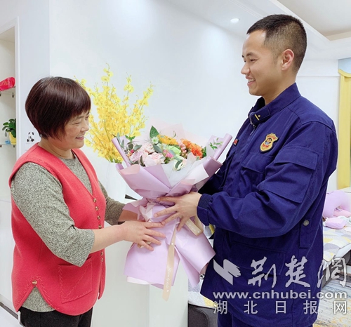 “媽媽,這些年您辛苦了,感謝您的養(yǎng)育、教育之恩,快到母親節(jié)了,在這個(gè)特殊的日子里,今年能親手送上一束鮮花您,希望您天天開心貌美如花……”母親節(jié)即將到來之際,咸寧特勤中隊(duì)副中隊(duì)長張衡出差時(shí)利用午休時(shí)間回家送上一份母親節(jié)的禮物。