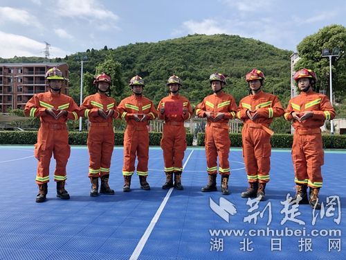 圖為消防指戰(zhàn)員手勢比心祝福母親節(jié)?!〔塘窒葦z