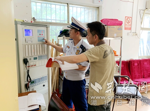圖為消防監(jiān)督員檢查場所消防設(shè)施現(xiàn)場。 阮曉芬攝