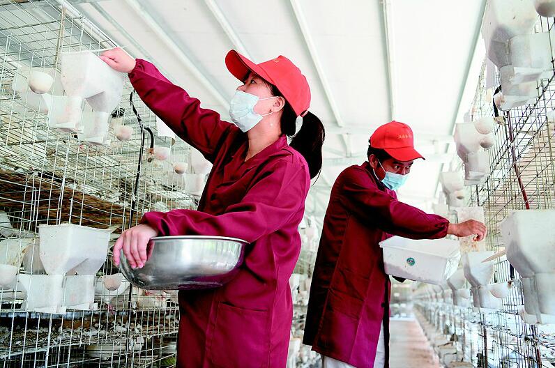 7月3日,通城縣北港鎮(zhèn)大界村土鴿養(yǎng)殖專業(yè)合作社社員在給土鴿喂食。該合作社是通城返鄉(xiāng)創(chuàng)業(yè)女青年劉慶創(chuàng)辦,建設(shè)標(biāo)準(zhǔn)化土鴿養(yǎng)殖基地,飼養(yǎng)近萬對土鴿。合作社采取“支部+合作社+基地+貧困戶”模式,吸納當(dāng)?shù)?0戶貧困戶打工就業(yè),10戶貧困戶入股分紅,帶動周邊近百戶貧困戶發(fā)展養(yǎng)鴿增收脫貧。