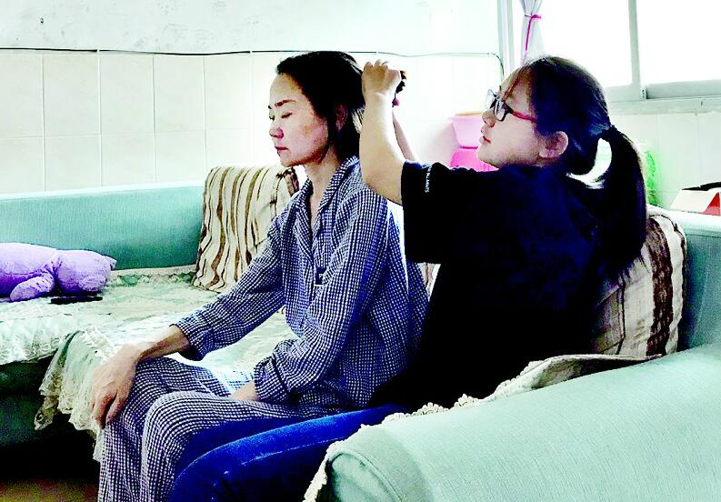 王渝玥原計(jì)劃跟同學(xué)開暑期培訓(xùn)班,這樣可給媽媽掙點(diǎn)藥費(fèi),但沒(méi)想到媽媽病情惡化,她只好放棄開班的想法全身心陪護(hù)母親。從沒(méi)干過(guò)家務(wù)的她,拿起了拖把拖地,學(xué)會(huì)了簡(jiǎn)單做飯,每天幫母親洗澡,扶著母親上下床、上衛(wèi)生間?!吧洗髮W(xué)的日子越來(lái)越近,我要好好陪媽媽,她已沒(méi)法陪我一起去北京了……”王渝玥說(shuō)到這里淚如雨下。
