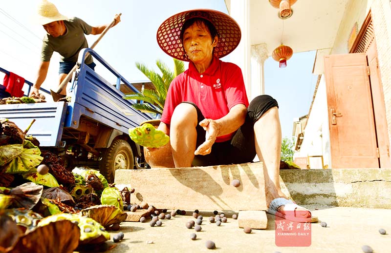 “現(xiàn)在每天5點(diǎn)半就下田,天太熱,一般采到9點(diǎn)多收工,怕中暑。”劉思群用衣袖擦了一把汗水介紹,夏天是蓮子的高產(chǎn)季,村里大概有60多戶種湘蓮,每天100多人在田里勞作。