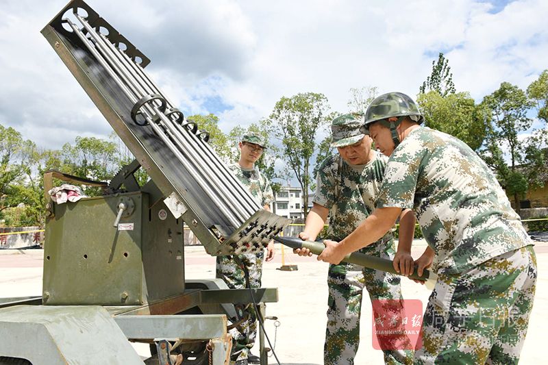 26日,在崇陽縣港口鄉(xiāng)中學(xué),該縣氣象局工作人員正在此架設(shè)火箭炮,守候?qū)α髟茖?,抓住有利時機(jī)實(shí)施人工增雨抗旱作業(yè)。