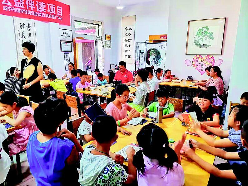 圖為:咸寧市咸安區(qū)溫泉街道南昌路社區(qū)國(guó)學(xué)推廣中心火熱的學(xué)習(xí)場(chǎng)景。