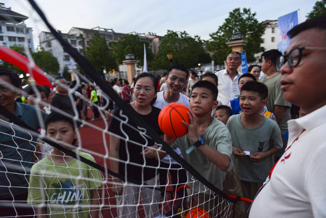 一分鐘跳繩活動現(xiàn)場“繩”采飛揚,參賽者五人一組,各施技藝,場面歡樂又熱鬧;踢毽子區(qū),選手們閃轉(zhuǎn)騰挪,五彩繽紛的毽子上下翻飛,畫出一條條優(yōu)美的弧線;一分鐘投籃比賽,選手們對著籃球機左右開弓,瘋狂進(jìn)球,屏幕上的分?jǐn)?shù)跳跳跳,圍觀的居民直呼“高手在民間” 。